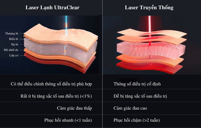 | Laser Lạnh UltraClear có nhiều ưu điểm vượt trội so với Laser tái tạo da trước đây |