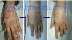 Do mô da bị mất màu khiến vết sẹo có màu trắng. Công nghệ mới hiện nay sử dụng phương pháp quang trị liệu với tia UV kết hợp cùng lúc với việc dùng thuốc thoa, uống… và đặc biệt, trong trường hợp cần thiết, sẽ thực hiện phẫu thuật ghép da hoặc cấy tế bào sắc tố…