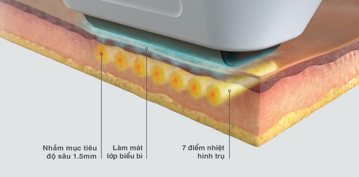 - Tích hợp công nghệ làm mát trực tiếp Sofcool™: Thiết kế đầu phát thông minh kết hợp tạo nhiệt – làm mát đồng thời thông qua tiếp xúc trực tiếp, đảm bảo nhiệt độ luôn ổn định, tác động chính xác vào lớp trung bì mà không gây bỏng hay tổn thương da.