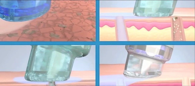 Hệ thống HydraFacial sử dụng đầu típ đặc chế Vortex điều trị tự động mà không cần dùng tay tiếp xúc với da như việc chăm sóc da "thủ công" hiện tại. Đầu típ Vortex đưa các dung dịch điều trị và dưỡng chất xuống dưới da theo lực xoắn ốc làm cho tế bào chết và chất cặn bẩn dưới da bị phân rã, lỗ chân lông nở ra để cho lực hút chân không hút sạch sâu mọi chất bẩn tích tụ.