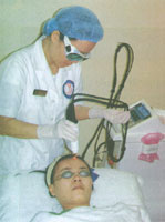 Loại laser mới này có tên CT3, là loại laser công suất cao Nd-YAG xung dài (20ms), có bước sóng 1.320nm, đã được cơ quan FDA (Mỹ) xác nhận hiệu quả và chính thức chấp thuận cho sử dụng tại Mỹ để điều trị mụn, xóa sẹo mụn trứng cá… Khi chiếu vào da, với bước sóng 1.320nm, tia laser CT3 đi sâu tác động trực tiếp vào tuyến bã, làm co tuyến bã, ngăn chặn hiệu quả việc phát sinh nhiều bã nhờn gây mụn trứng cá. Tuy nhiên, để có thể đi xuyên qua da, tác động mạnh vào tuyến bã nằm bên dưới mà không hủy hoại lớp da bên trên, đầu chiếu tia laser được trang bị thêm 1 đầu xịt hơi lạnh (cryogen), 1 đầu kiểm soát nhiệt độ da khi chiếu tia, và tất cả đều được điều khiển bằng máy vi tính. Việc xịt hơi lạnh sẽ hạ thấp nhiệt độ nhằm bảo vệ lớp da bề mặt (bên trên), trong khi vẫn để cho tia laser đi xuyên tác động mạnh vào các tuyến bã bên dưới. Bộ phận kiểm tra nhiệt độ được nối với máy vi tính sẽ đảm bảo lớp da bề mặt không bị quá nhiệt gây tổn thương… Nếu nhiệt độ bề mặt da vượt quá 45oC, máy vi tính sẽ ngăn chặn máy phát tia laser…