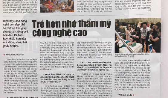 - Xin chào Bác Sĩ (BS) Tú, BS có thể cho biết về tiến bộ của TMNK trong một số lĩnh vực làm đẹp?