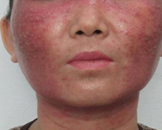 3.Thể đỏ da dãn mạch kéo dài: Đây là thể nặng dai dẳng do bôi corticoid là Dexamethasone dạng thuốc nguyên chất không pha trộn trong thời gian dài vài năm trở lên.